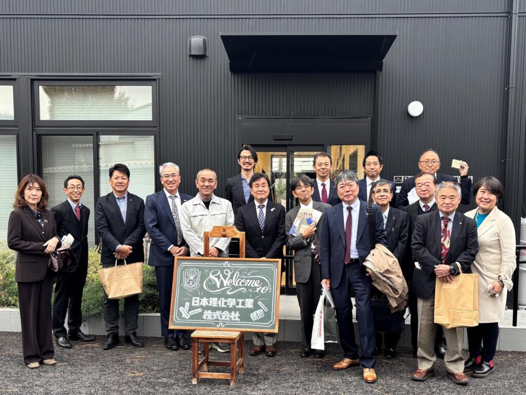 合計15名の会員が参加。貸し切りバスでまず向かったのは,川崎市内の日本理化学工業株式会社の川崎工場・本社です。同社が製造・販売する主力商品は,学校等でよく見かけるチョークで,国内シェアは約7割以上に及ぶそうですが,昨今の少子化に加え,ホワイトボード,電子黒板,タブレット等,学習環境の変化による需要減少に対応し,国産米を原料とするワックスを使用し,ガラス等にも書けて,水で拭き取ることもできる新しい商品を開発し,展開されているとのことです。同社に関して最もご紹介したいのは,同社が積極的に知的障害のある方を雇用されている,という点で,そうした方が社員の3分の2以上を占め,その内の5割以上がIQ50以下の重度の障害者でありながら,皆さんがそれぞれに与えられた役割を果たし,会社にとって貴重な戦力として働かれているという点です。社員が任された仕事ができないのは、本人のせいではなく,教え方が悪いのであり,その人の理解力に見合った教え方を考えれば,必ず応えてくれるのです,という社長のお話は,企業の種類を問わず,人と人との関係を考える上でとても示唆に富んだものと感じられました。工場見学の際に現場で働いている皆さんは,みな生き生きとしておられ,帰路,工場から出発する我々のバスを多くの社員の方が手を振って見送ってくれたのはとても印象的でした。